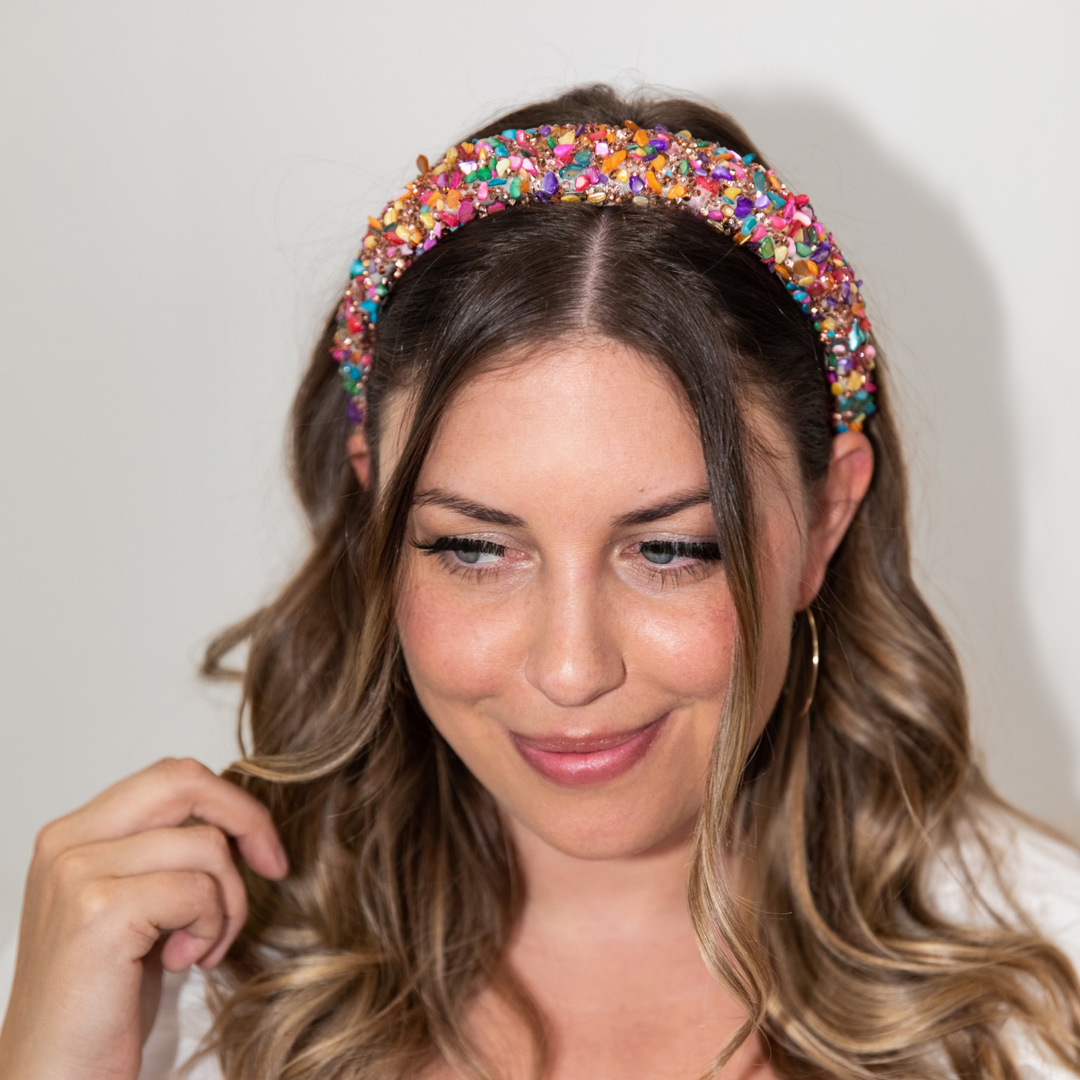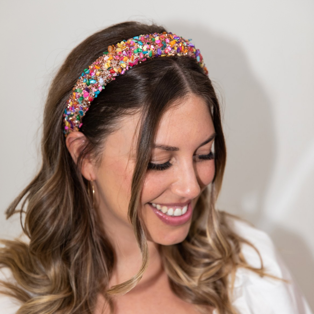 Show off your style with this All that Glitters Headband--literally! This ultra-luxe accessory is crafted from rose gold gems and features a multi-colored stone design, making it a fashionable way to rock the perfect look. Plus, it's comfy enough to wear all day without making your head feel like it got caught in a vice. Get ready to shine, #babes!