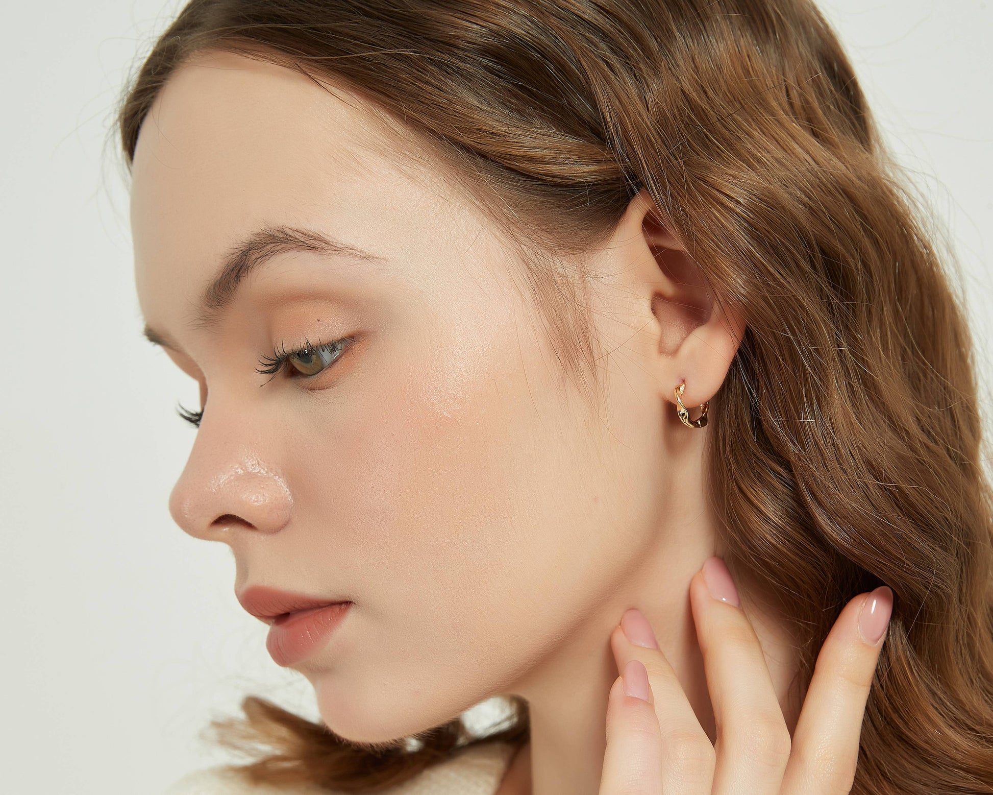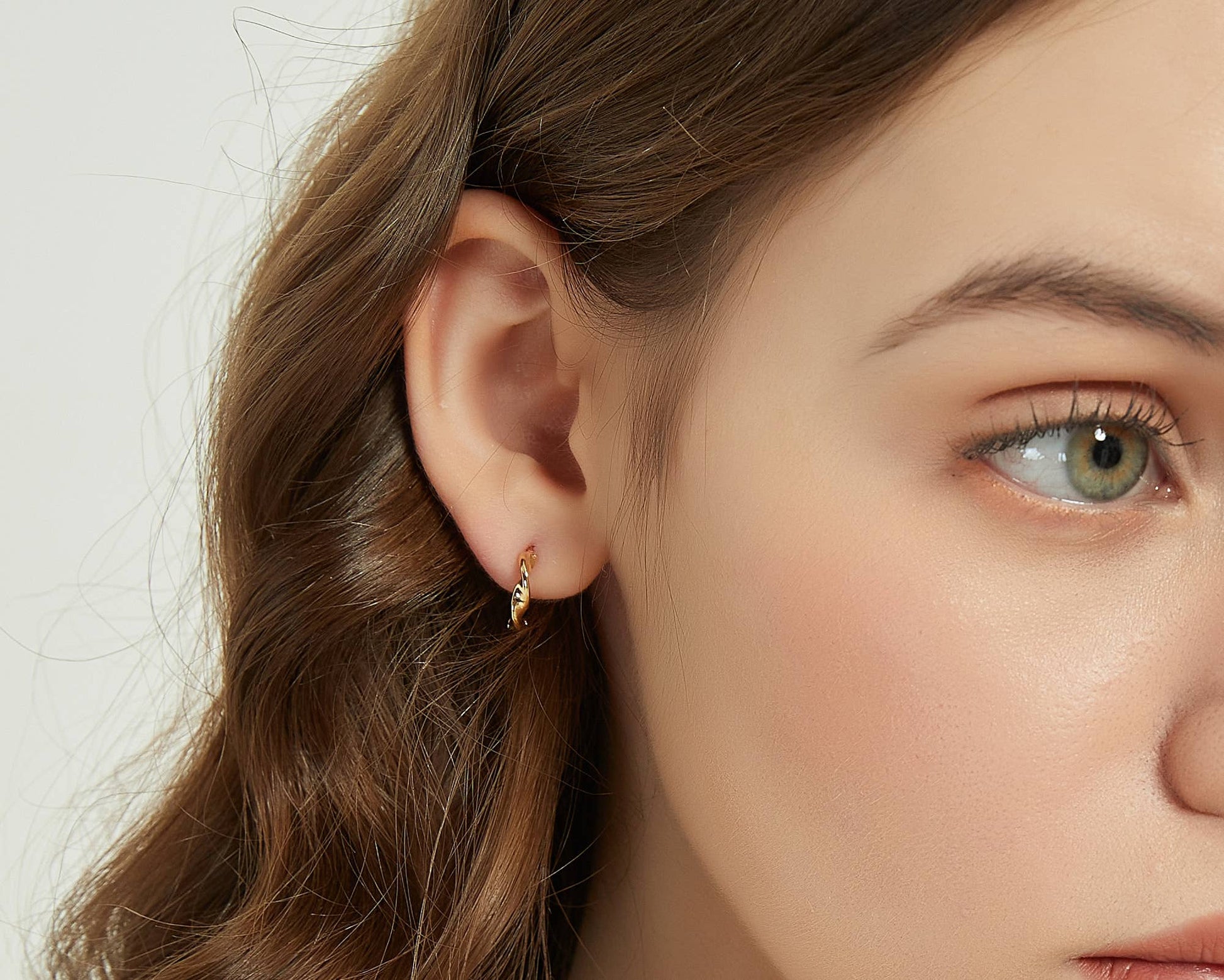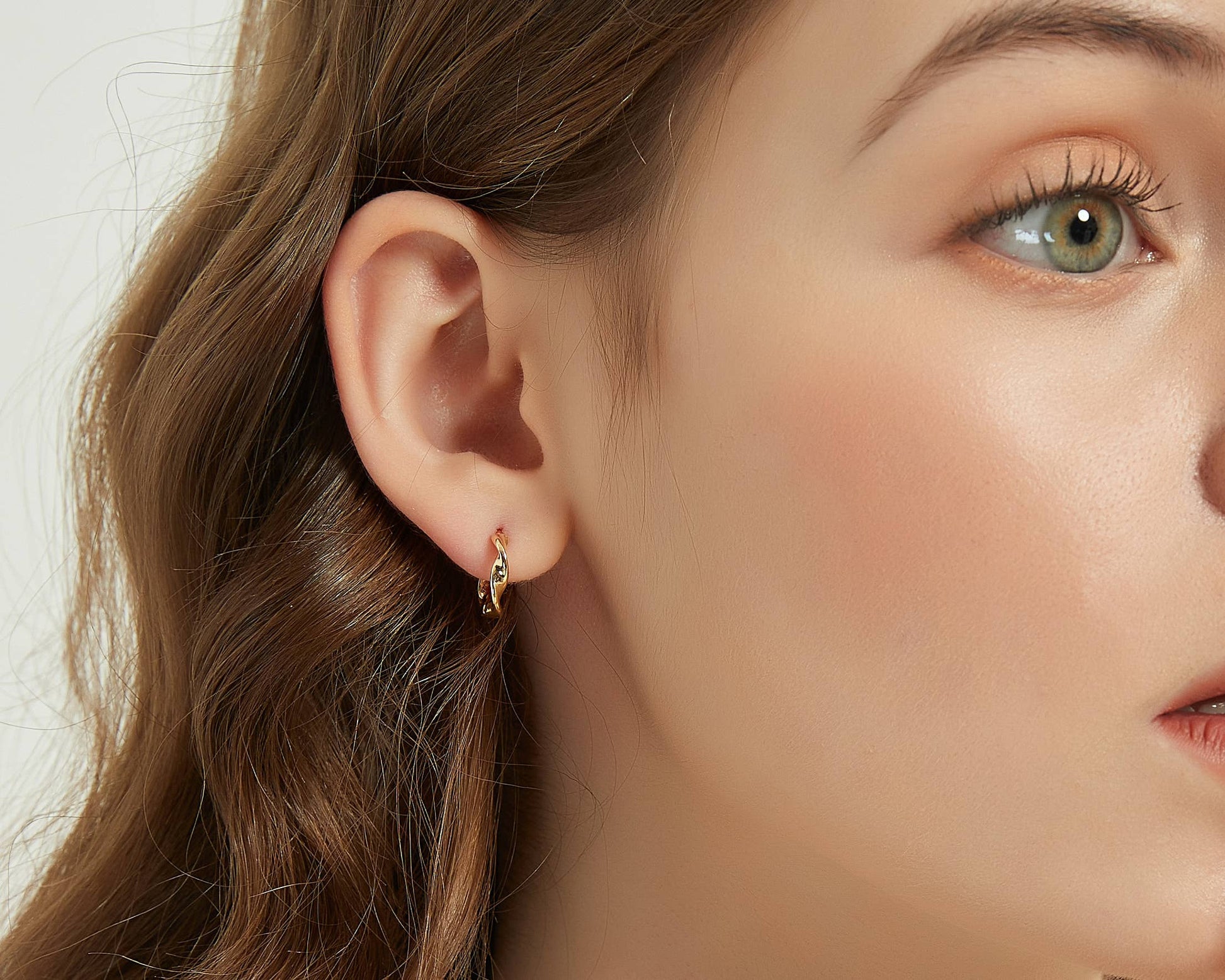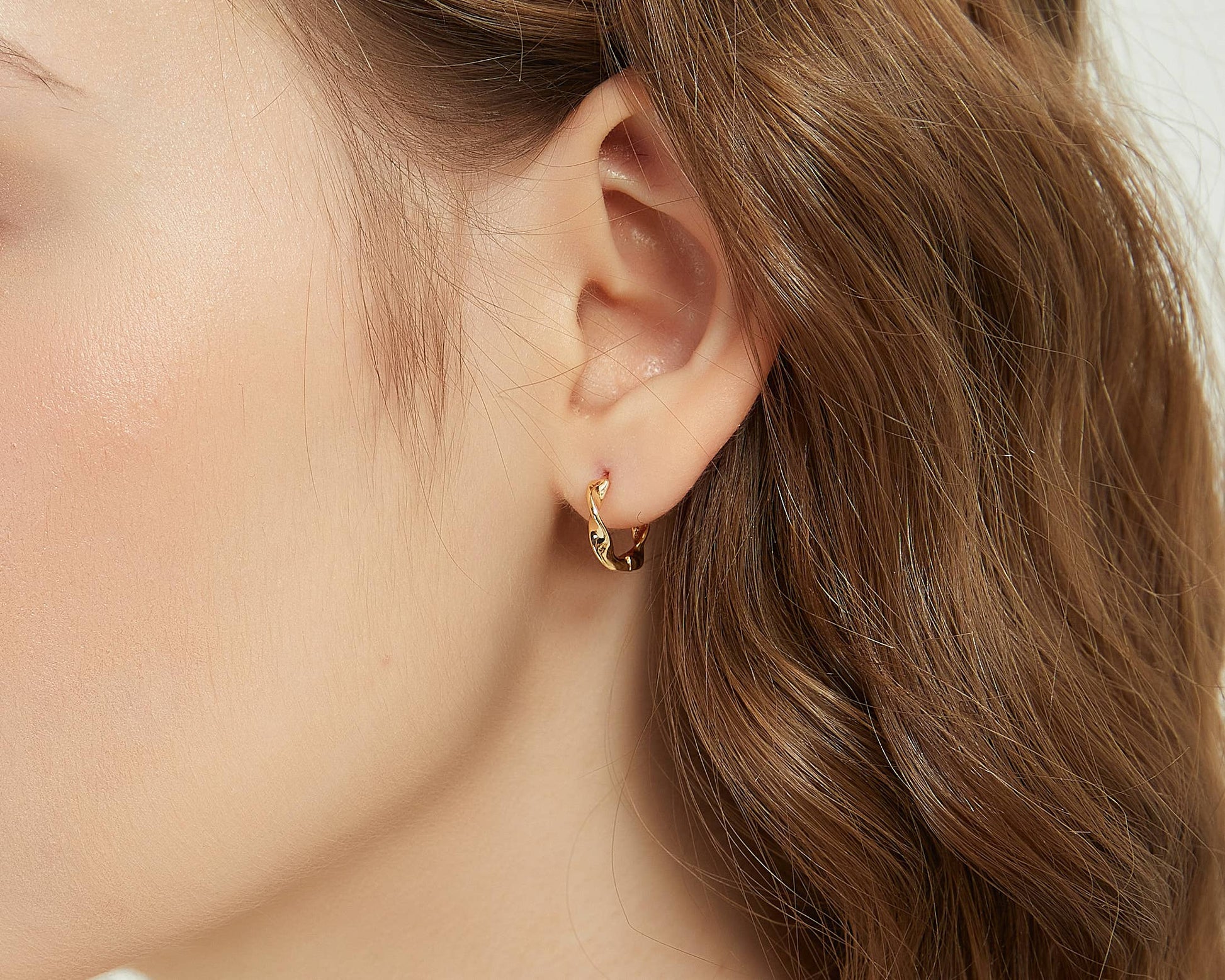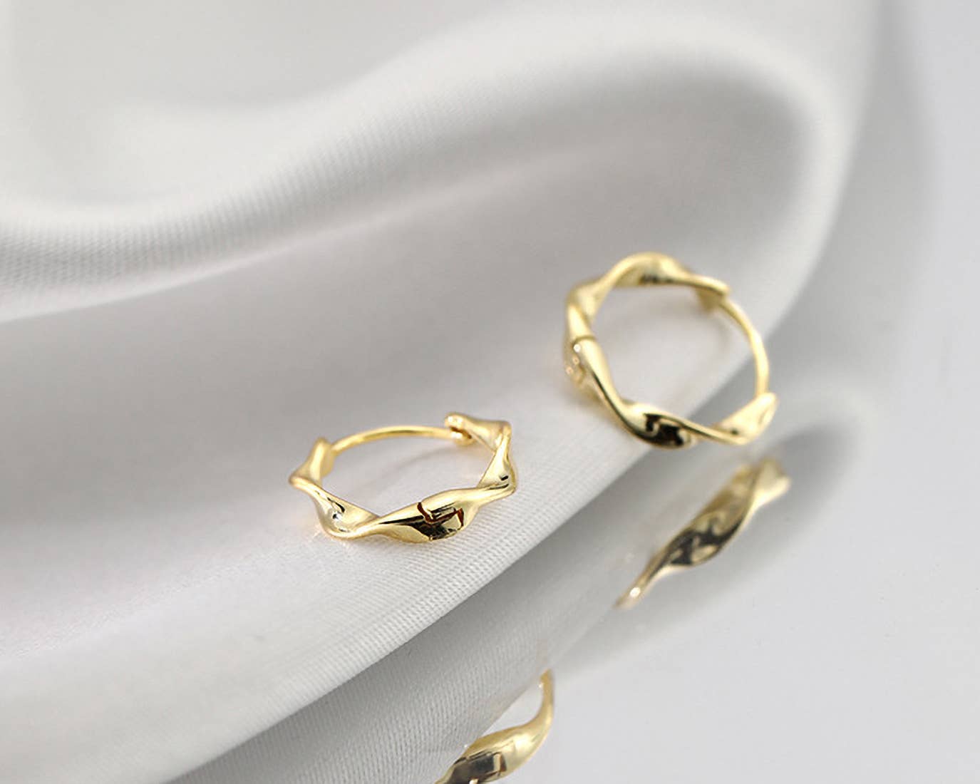 Wrap your lobes in elegance with our dainty twisted huggie hoop earrings, where delicate twists meet snug embraces. material: high quality solid S925 sterling silver SIZE - width: 13mm - length: 12mm DETAILS - handmade - sustainably sourced - water resistant - tarnish resistant - hypoallergenic - nickel free - lead free