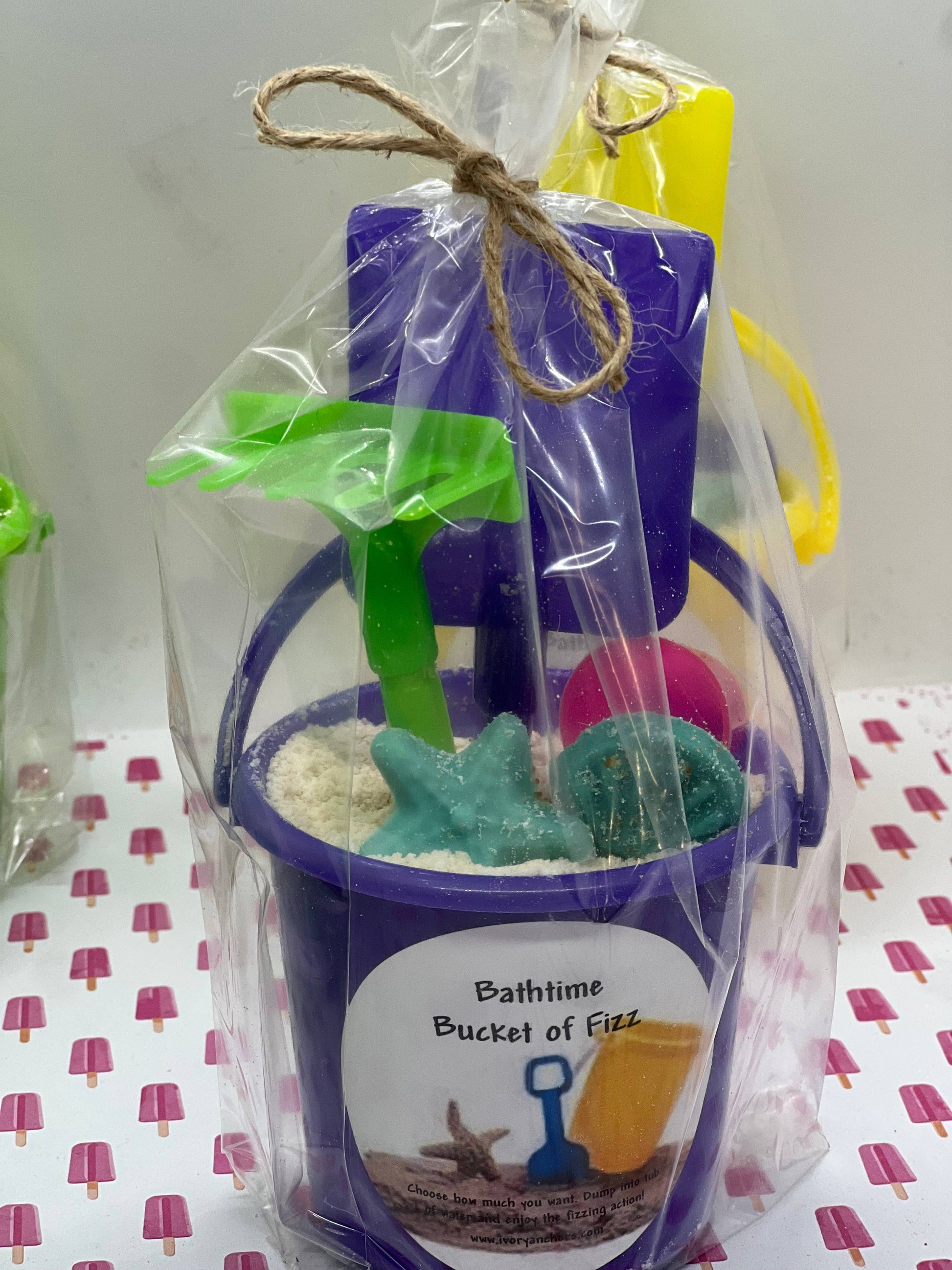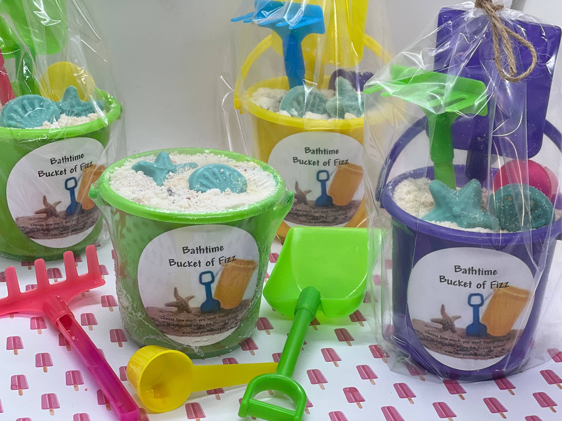 Bring the beach to your bath with our Bathtime Bucket of Fizz! This fun and fizzy bath bomb dust comes in a playful mini beach bucket, perfect for a relaxing and colorful soak. Each bucket is filled with luxurious, skin-loving ingredients that fizz and dissolve beautifully, releasing a soothing aroma and a splash of color into your tub. The littles in your life are sure to love.