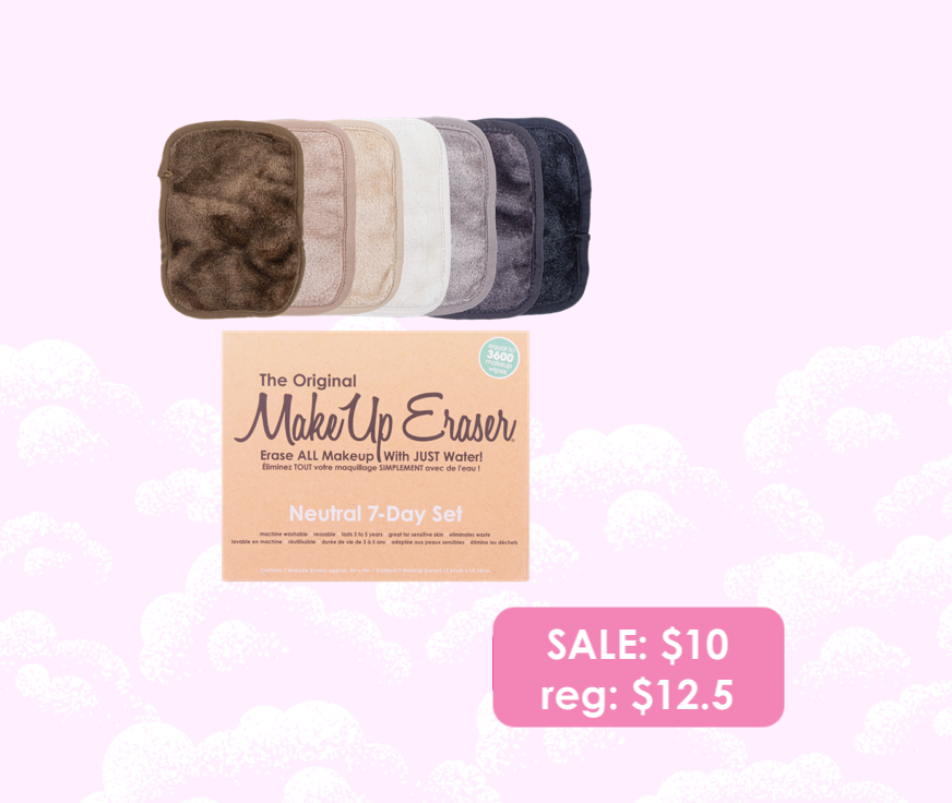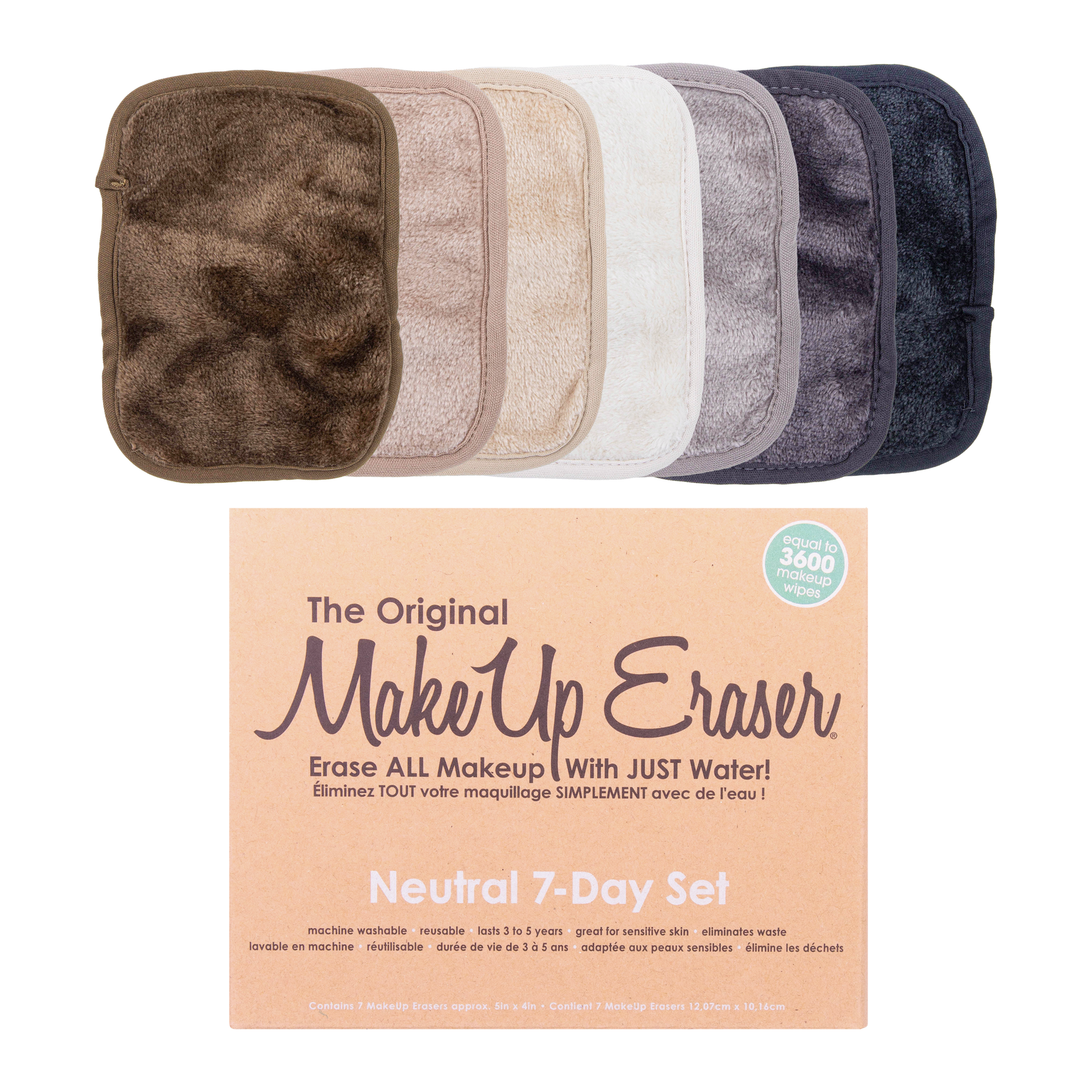 Erase all makeup with JUST WATER™ including waterproof. Our patented, water-activated, cloud-soft fibers gently & easily remove all makeup & sunscreen from pores. 2 in 1 benefit: one side erases makeup & one side exfoliates skin.