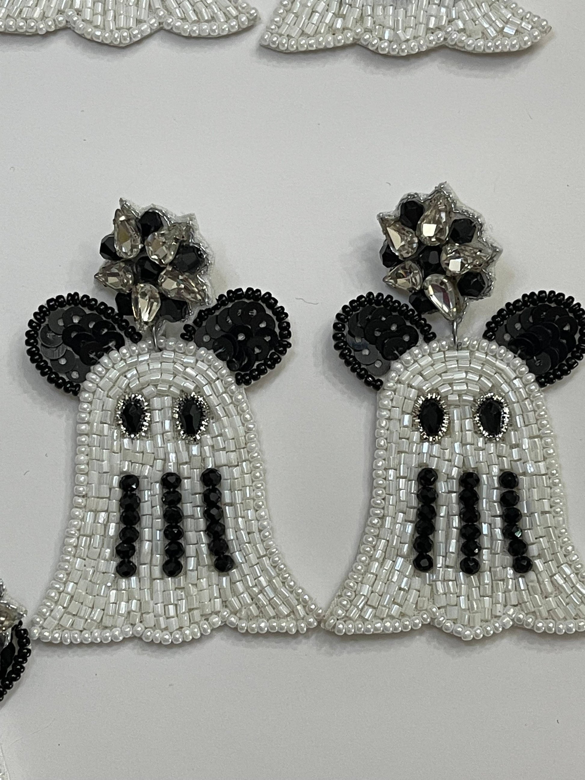 Custom made Mon Belle Amie - These Mickey inspired ghost earrings are the perfect accessory for your next trip to Disney during the No So Scary Halloween party. These white ghosts are beaded and jeweled with sequins.